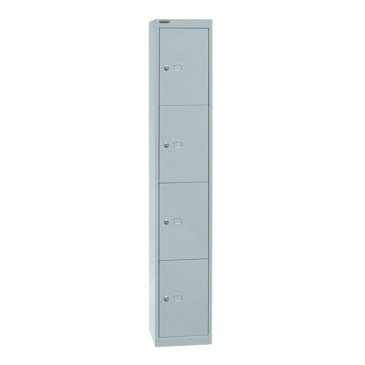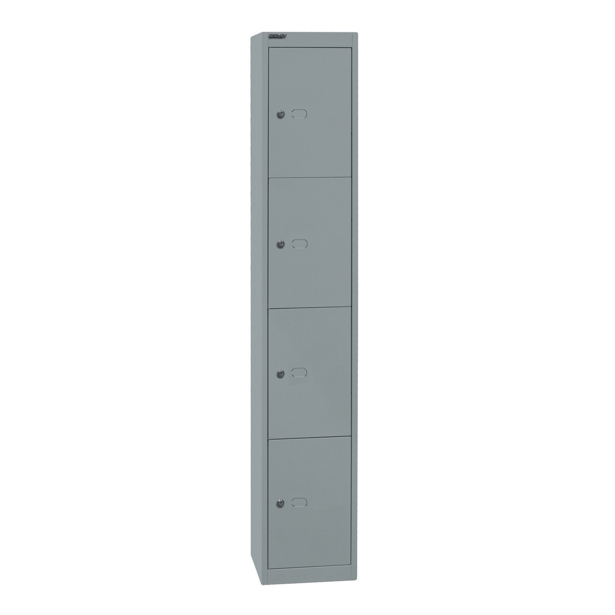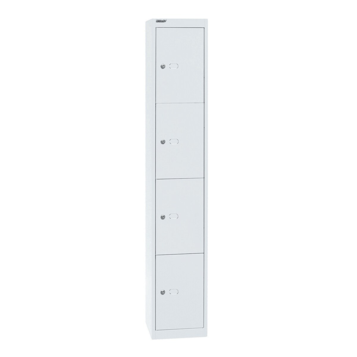 Bisley Garderobenschrank Office mit Schloss aus Stahlblech, 4 Fächer - Spind abschließbar für Sportzeug, Kleidung & Co. - Tiefe: 30,5 cm - Farbe: