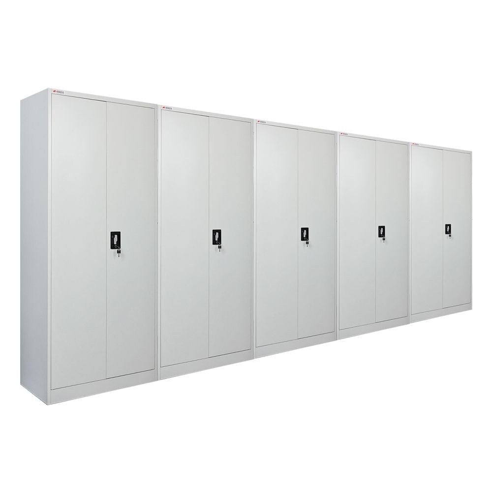 Flügeltürenschrank ELEPHANT mit 2 Türen, abschließbar | HxBxT 180x80x40cm | 4 Ebenen | Stahl mit Pulverbeschichtung | Lichtgrau | Spind Aktensc...