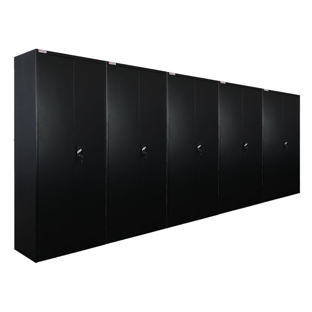 PROREGAL Mega Deal 5x Flügeltürenschrank ELEPHANT Metall Spind abschließbar 180x80x40cm Kleiderstange Stahlschrank Schwarz Garderobenschrank