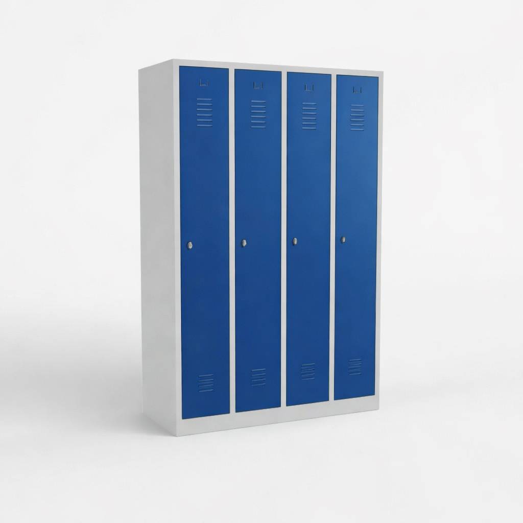 Spind 4-türig WRC Express Enzianblau Drehriegelverschluss, Blau, Grau, Stahl, Charly, Leicht zu reinigen