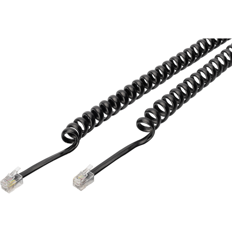 SYSTEM-S Festnetz Kabel 3 m 4P4C RJ9 Stecker zu Stecker Spirale in Schwarz