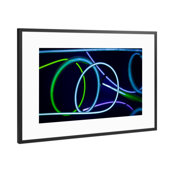 Poster mit Rahmen Schwarz (Metallic) "Blue Spin" artboxONE - Abstrakt - Kabel,Leuchten,Licht,Lichtschlauch,Spirale