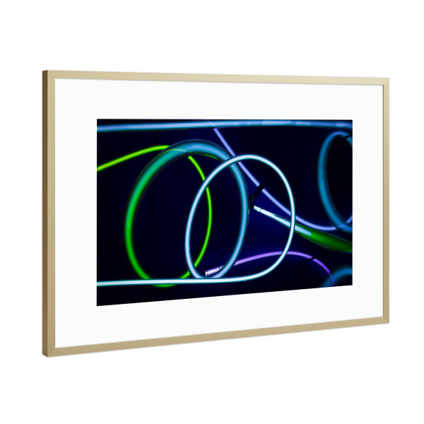 Poster mit Rahmen Gold "Blue Spin" artboxONE - Abstrakt - Kabel,Leuchten,Licht,Lichtschlauch,Spirale