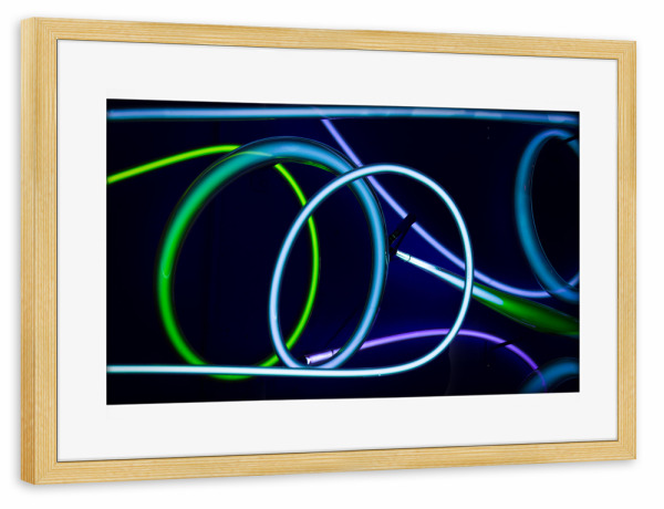 Poster mit Rahmen kiefer "Blue Spin" artboxONE - Abstrakt - Kabel,Leuchten,Licht,Lichtschlauch,Spirale