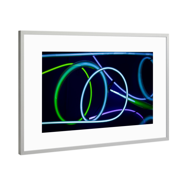 Poster mit Rahmen Silber "Blue Spin" artboxONE - Abstrakt - Kabel,Leuchten,Licht,Lichtschlauch,Spirale