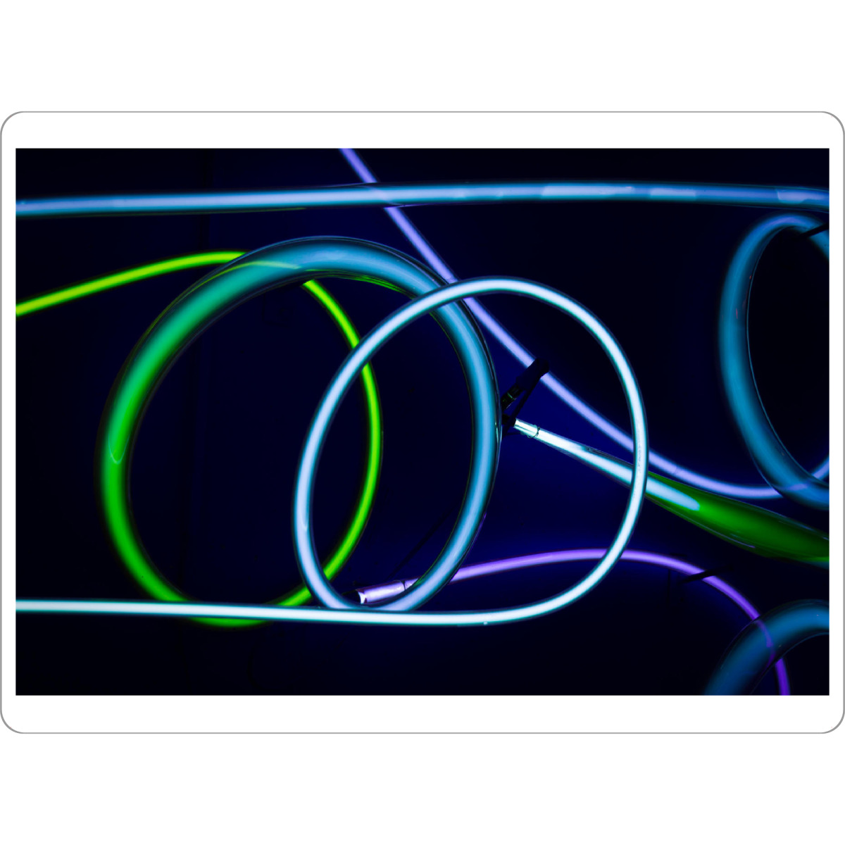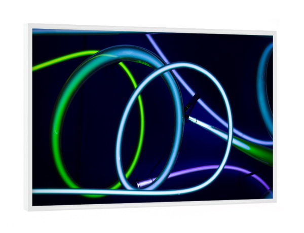 Poster mit weißem Rahmen "Blue Spin" artboxONE - Abstrakt - Kabel,Leuchten,Licht,Lichtschlauch,Spirale
