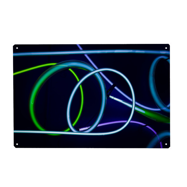 Metall Poster "Blue Spin" artboxONE - Abstrakt - Kabel,Leuchten,Licht,Lichtschlauch,Spirale - Blechschild