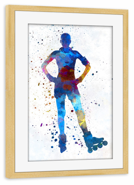 Poster mit Rahmen kiefer "Woman in roller skates-a" artboxONE - Sport