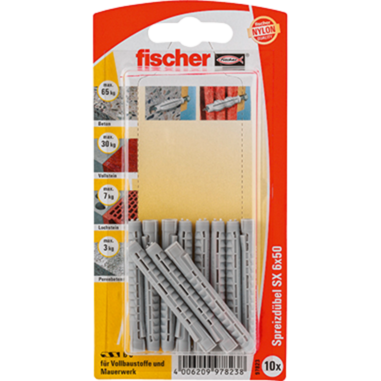 fischer Spreizdübel SX 6x50 K DE Dübel, hellgrau, 10 Stück