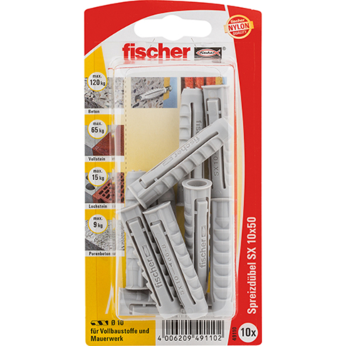 fischer Spreizdübel SX 10x50 K Dübel, hellgrau, 10 Stück