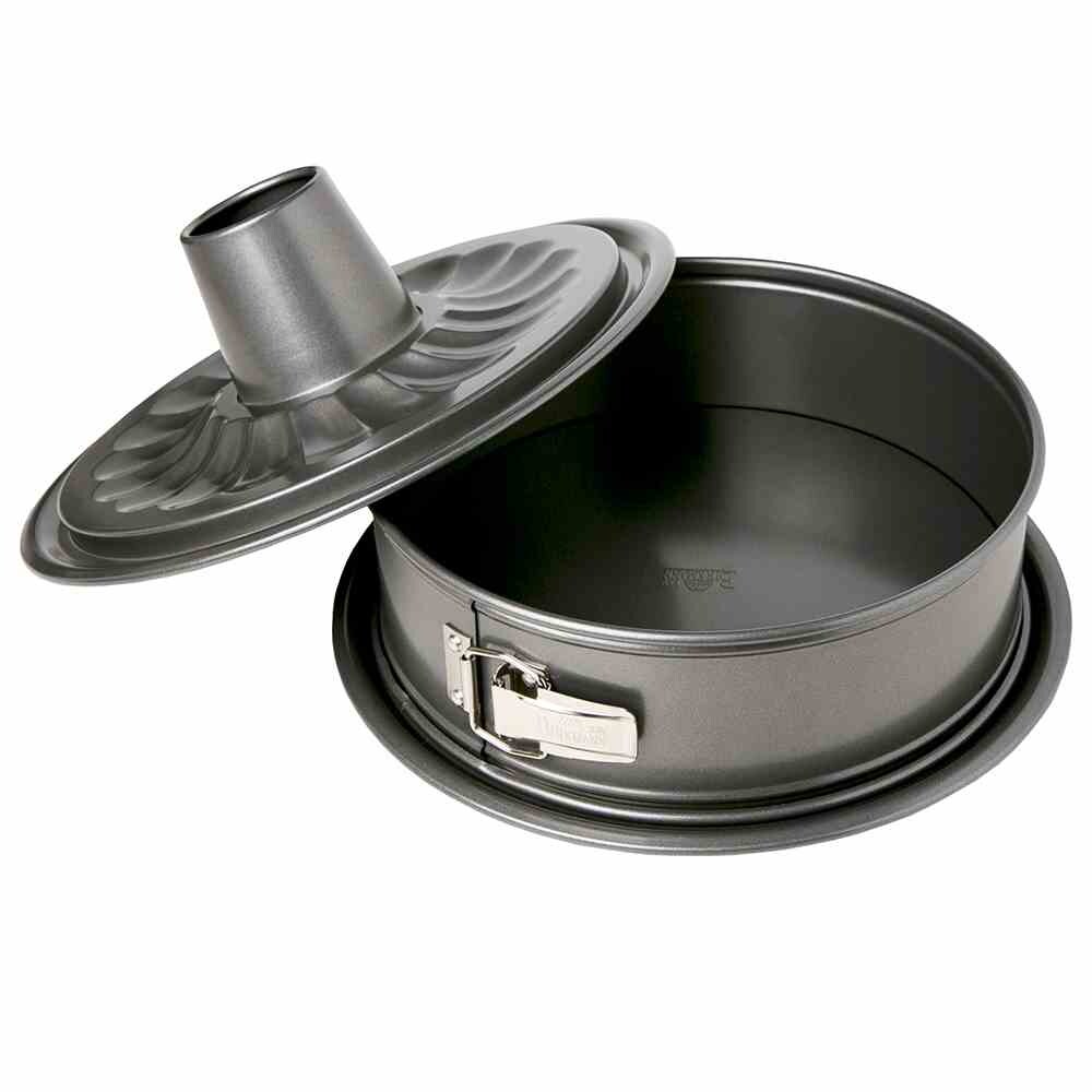 Inspiration Springform 28 cm rund, Backform mit 2 Böden, Flach- und Rohrboden, antihaftbeschichtet, auslaufsicher, einfach zu verschließen
