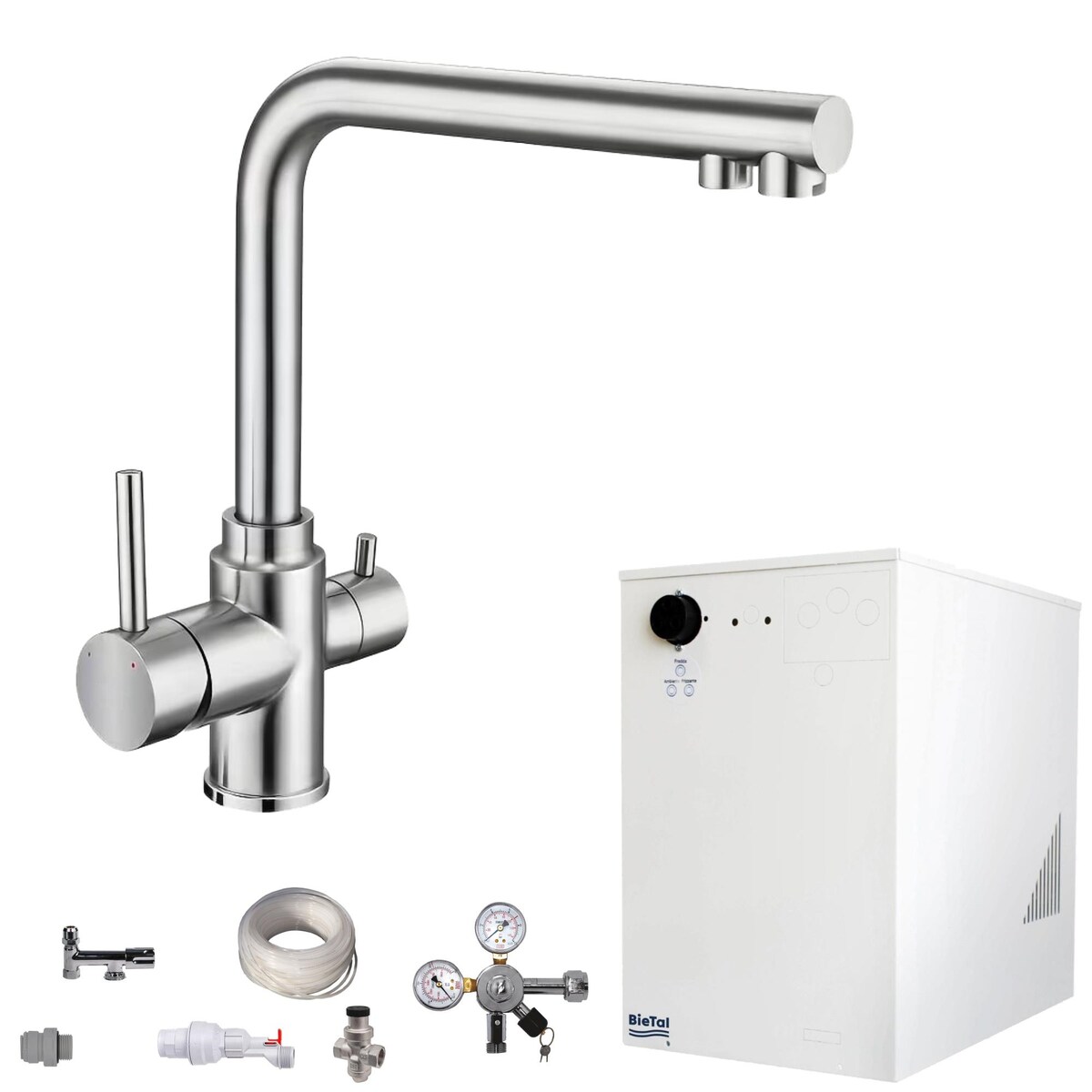 Sprudelwasser Tafelwasseranlage BieTal BT-10U 3-Wege L Wasserhahn Edelstahl SET