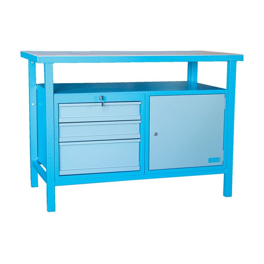 Güde Werkbank P 1200 SLT Werktisch, Arbeitstisch, Werkstatttisch mit 3 Schubladen & 1 Tür, stabil, robust, langlebig, Werkstatt, Garage, Heimwerke