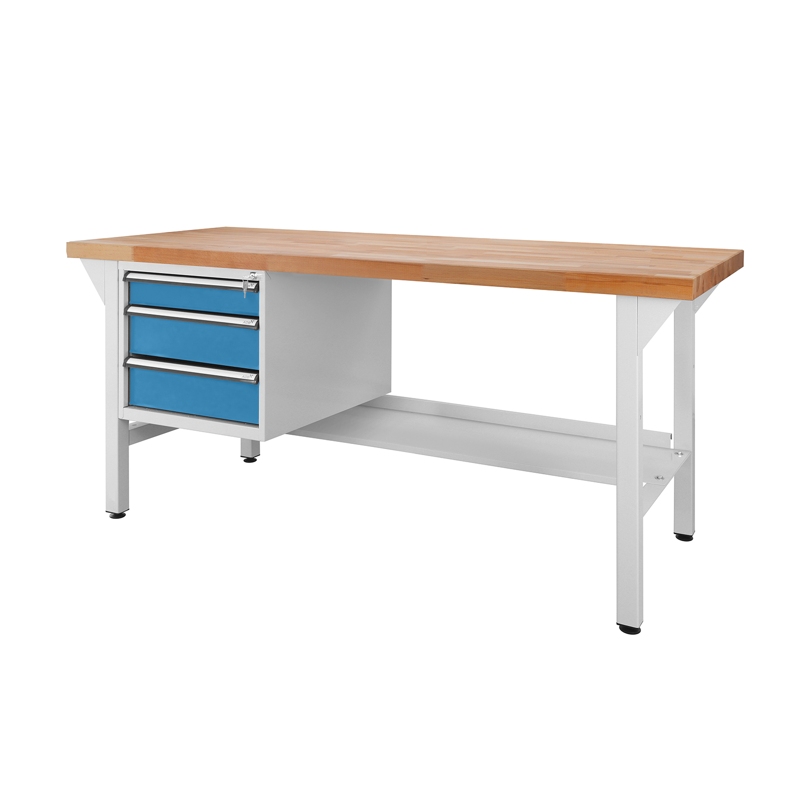 ADB Werkbank mit Schubladenbox 3 SL 2000 mm – stabiler Werktisch, Arbeitstisch, Montagetisch – robust, belastbar, sicher – ideal für Werkstatt,