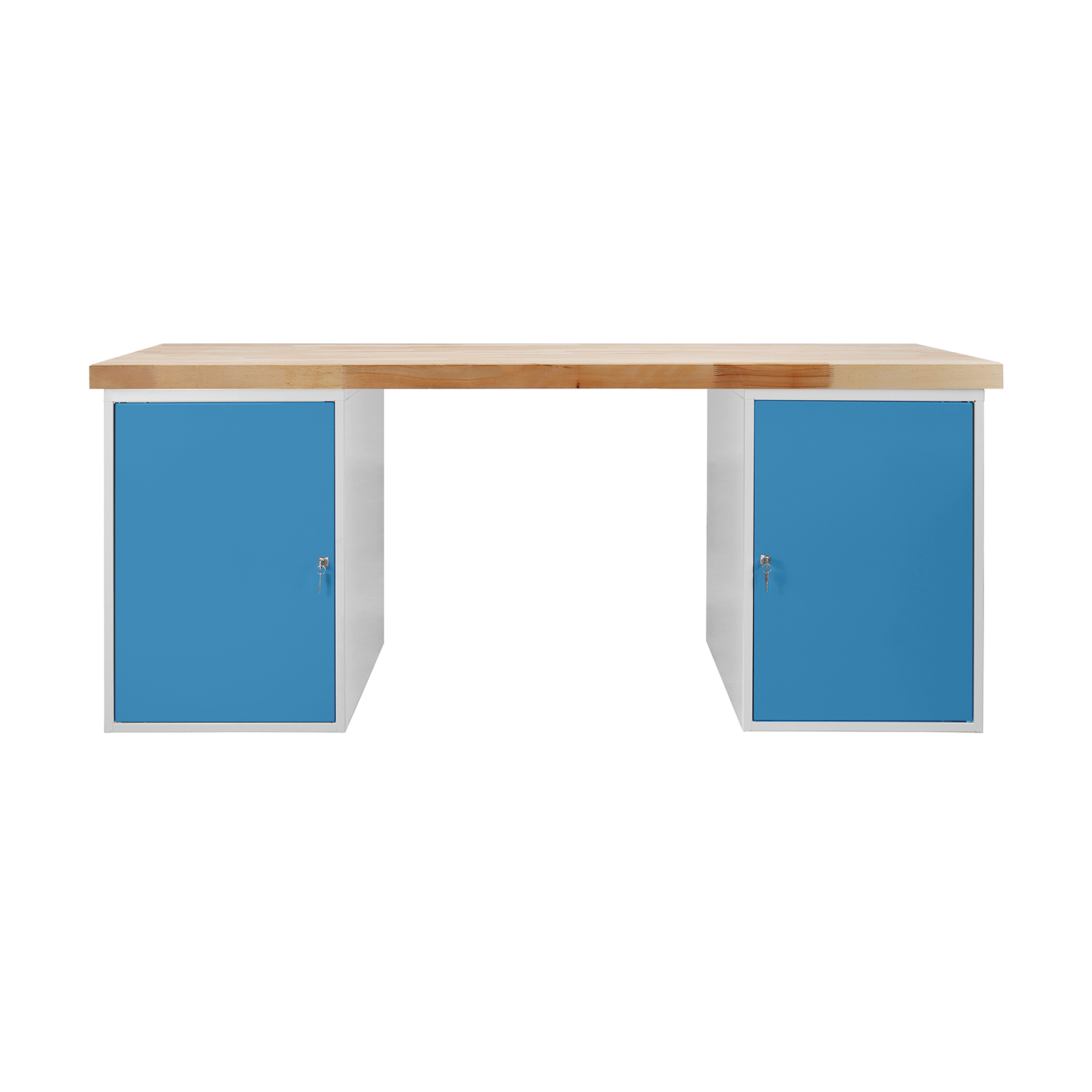 ADB Werkbank 2000 mm mit 2 Stahlblechschränken, Werkstatttisch, Arbeitstisch, Montagetisch, massiv Buchenplatte, stabil 500kg, langlebig – für Wer