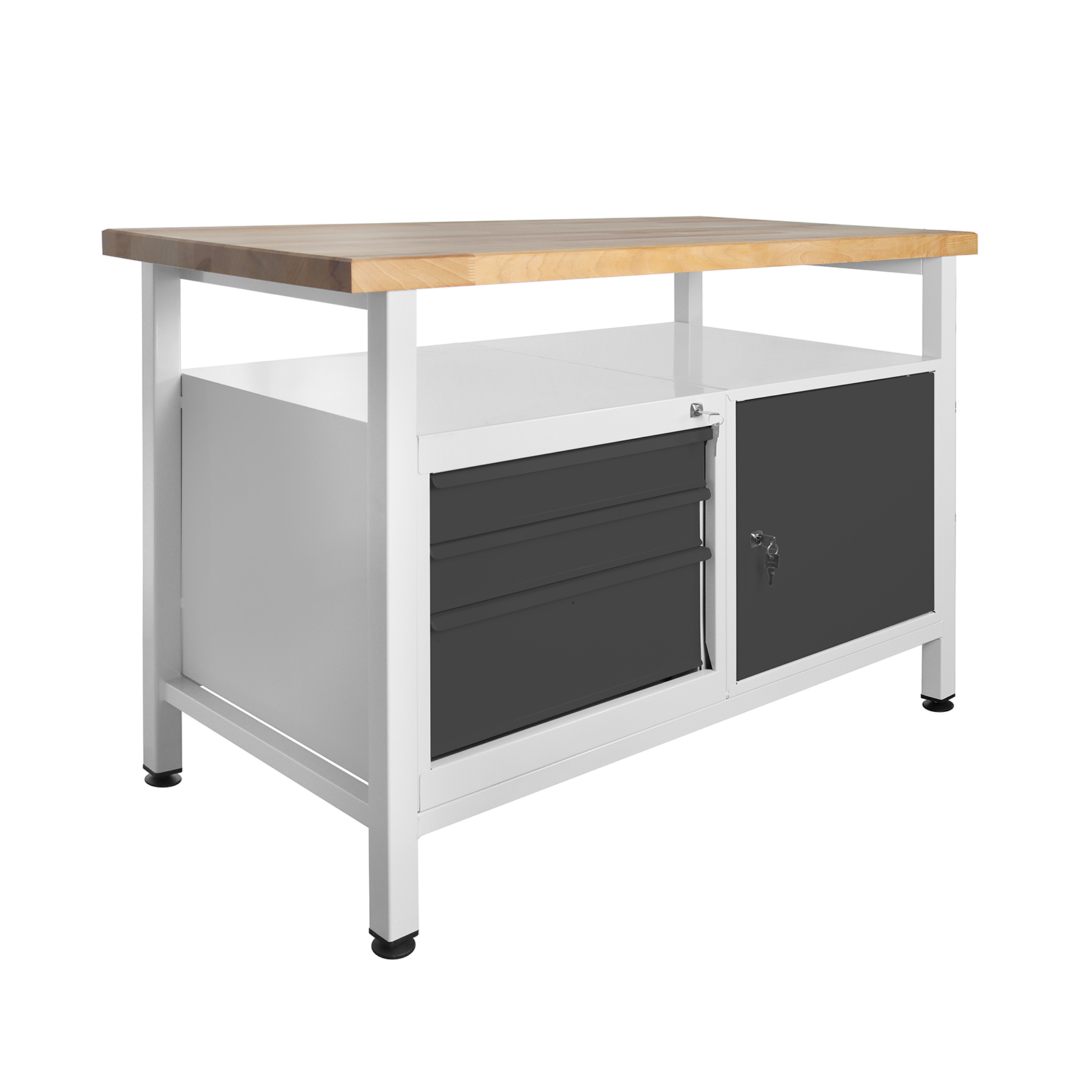 ADB RHYNOX Werkbank 3 Schubladen + Tür RAL7035/7016 – stabiler Werktisch, Werkzeugbank, Arbeitstisch – hohe Tragkraft, montiert, mit Schließfach