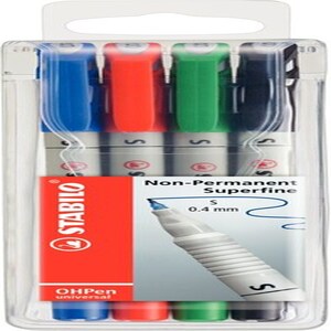 Folienstift STABILO OHPen, Strichstärke 0,4 mm, wasserlöslich, 4-er Etui, sortiert