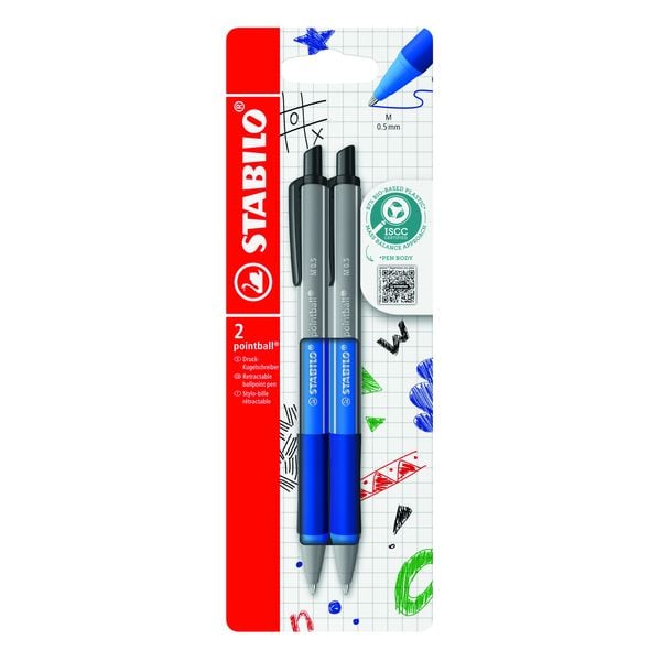STABILO Kugelschreiber pointball blau schwarz 2 Stück Blister
