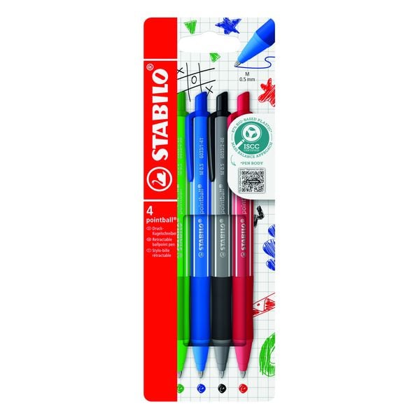 Druck-Kugelschreiber - STABILO pointball - 4er Pack - blau, schwarz, rot, grün