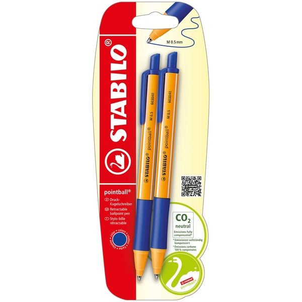 Druck-Kugelschreiber - STABILO pointball - 2er Pack - blau, schwarz