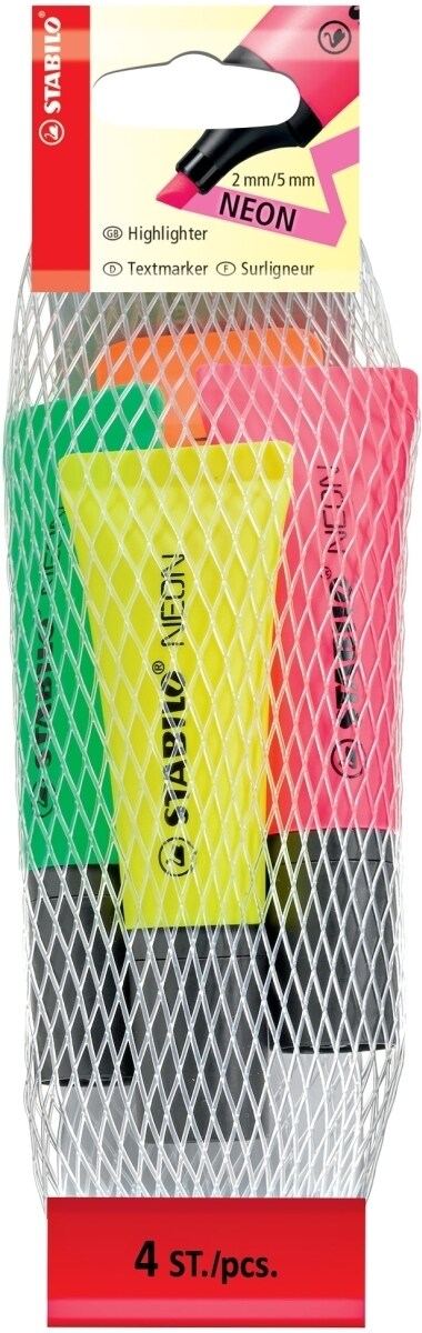 STABILO Textmarker Neon sortiert Netz mit 4 Stiften Packung mit 5 Stück