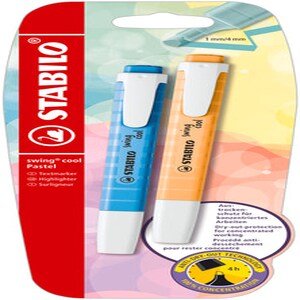 Textmarker - STABILO swing cool Pastel - 2er Pack - Himmlisches Blau, Sanftes Orange