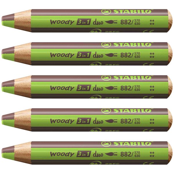 STABILO woody 3 in 1 duo Farbstifte, Einzelstift, Hellgrün/ Braun