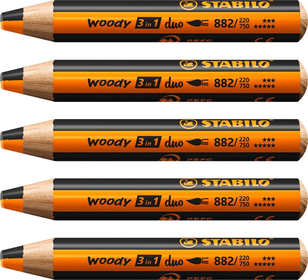 Buntstift, Wasserfarbe & Wachsmalkreide - STABILO woody 3 in 1 - 5er Pack - gelborange