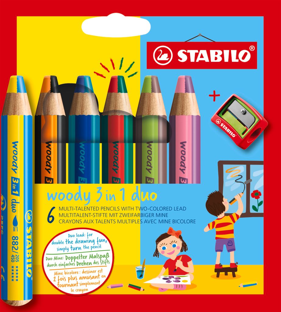Stabilo Farbstift woody 3 in 1 Duo - Set mit 6 + Spitzer