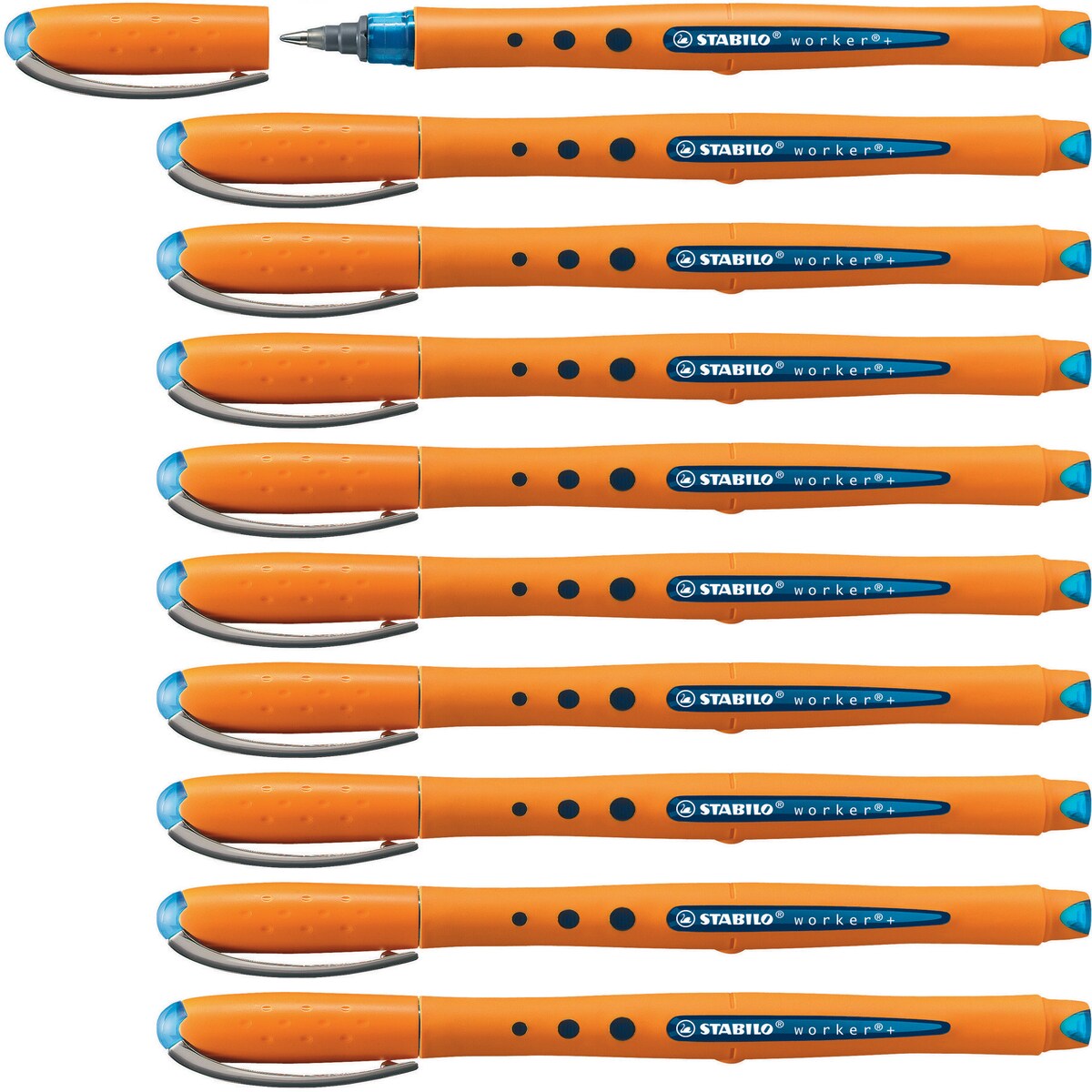 Tintenroller - STABILO worker+ - medium - 10er Pack - blau