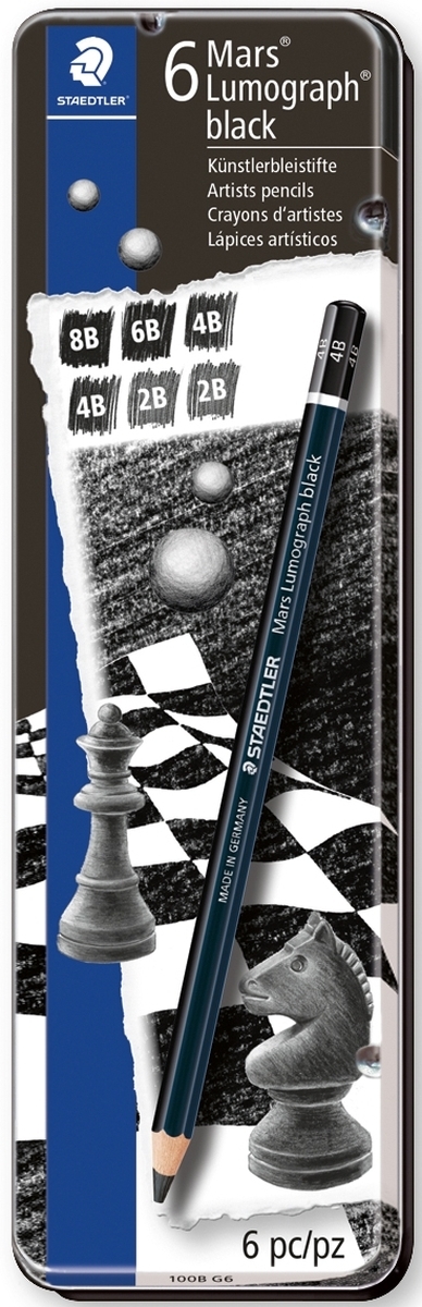 STAEDTLER Bleistift Mars Lumograph black Metalletui mit 6 Stiften schwarz