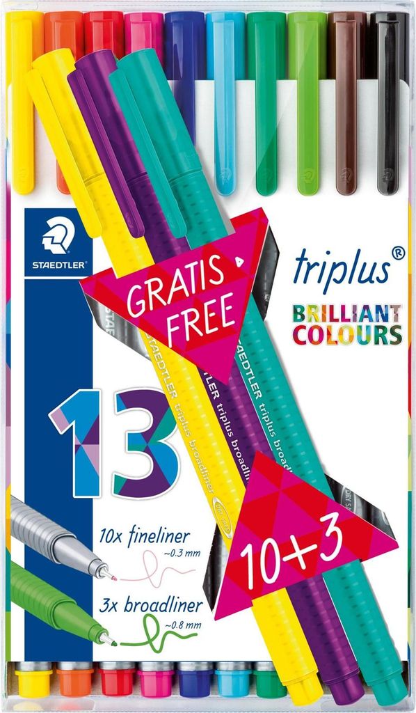 STAEDTLER Fineliner triplus BRILLIANT COLOURS 10+3 Etui