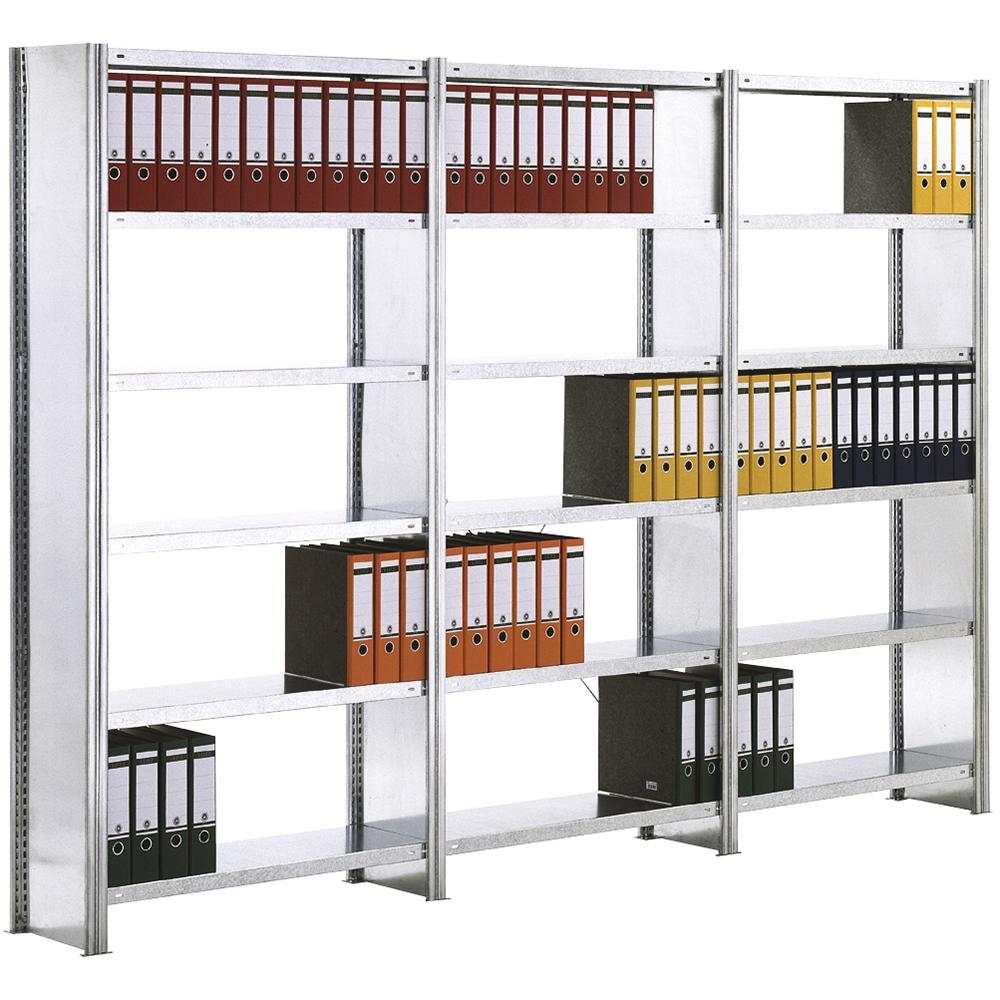 Büro-Fachbodenregal FALKE Stecksystem | Grundregal | Tall | HxBxT 200x88x30cm | 6 Stahlfachboden | Einseitig nutzbar | Verzinkt
