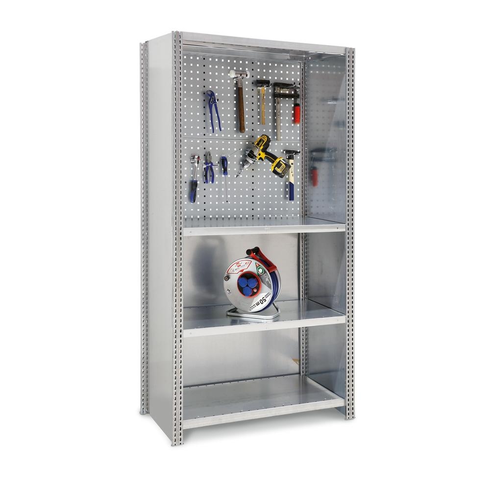 PROREGAL Werkstatt-regal FALKE Stecksystem mit Seitenwand Vollblech | Grundregal | HxBxT 200x100x50cm | 4 Stahlfachboden & Lochblech-Rückwand