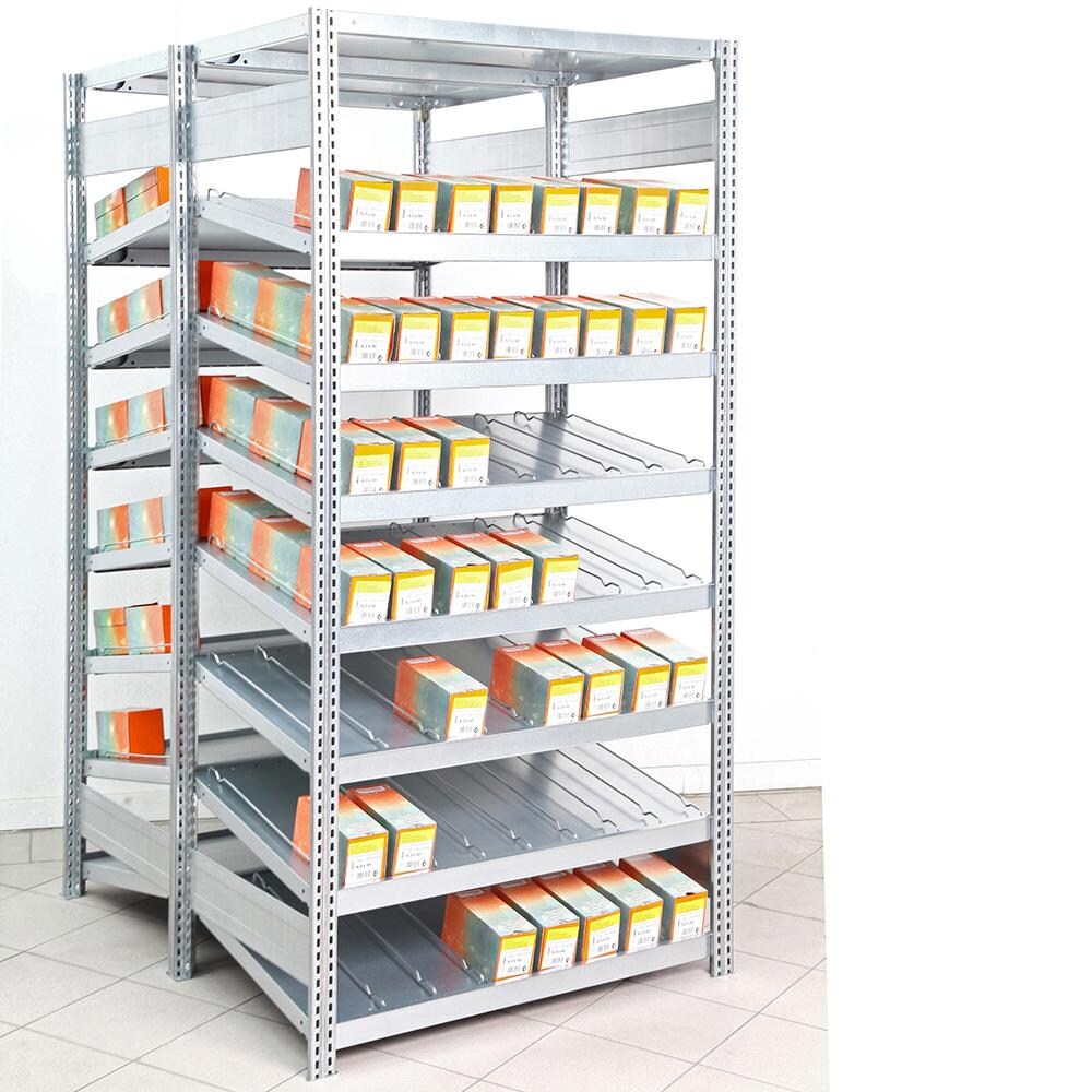 Kanbanregal doppelseitig FALKE Stecksystem | Grundregal | HxBxT 200x101x160cm | 7x Schrägboden Ebenen, 1x Deckel Stahlfachboden | Fachlast 250kg |...