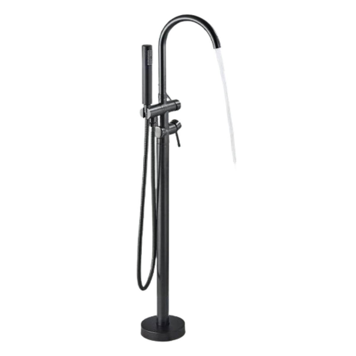 JANA | Premium Freistehende Armatur für die Badewanne in Schwarz | Edelstahl Standarmatur inkl. Handbrause |Mischbatterie Badewanne Bodenmontage H...