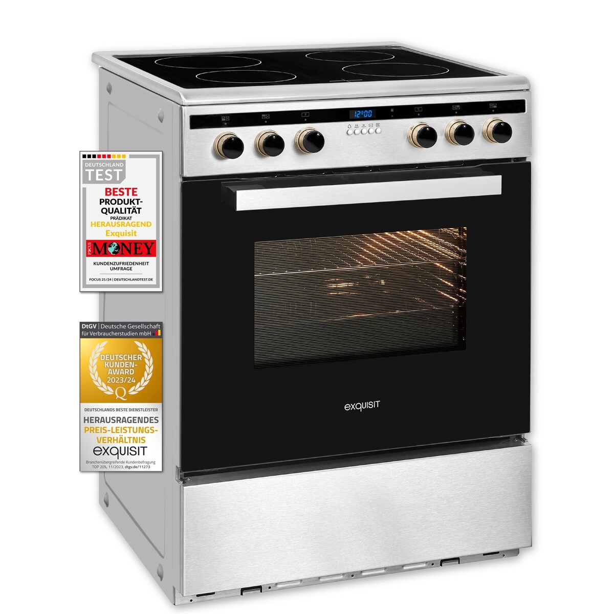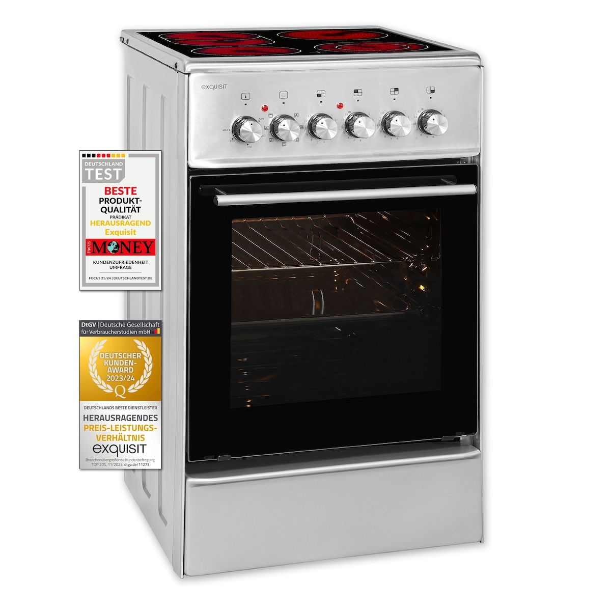 Exquisit ECM 6-4 Inox Elektro-Standherd | Glaskeramik | Ober- / Unterhitze | Grill | Umluft | Inox