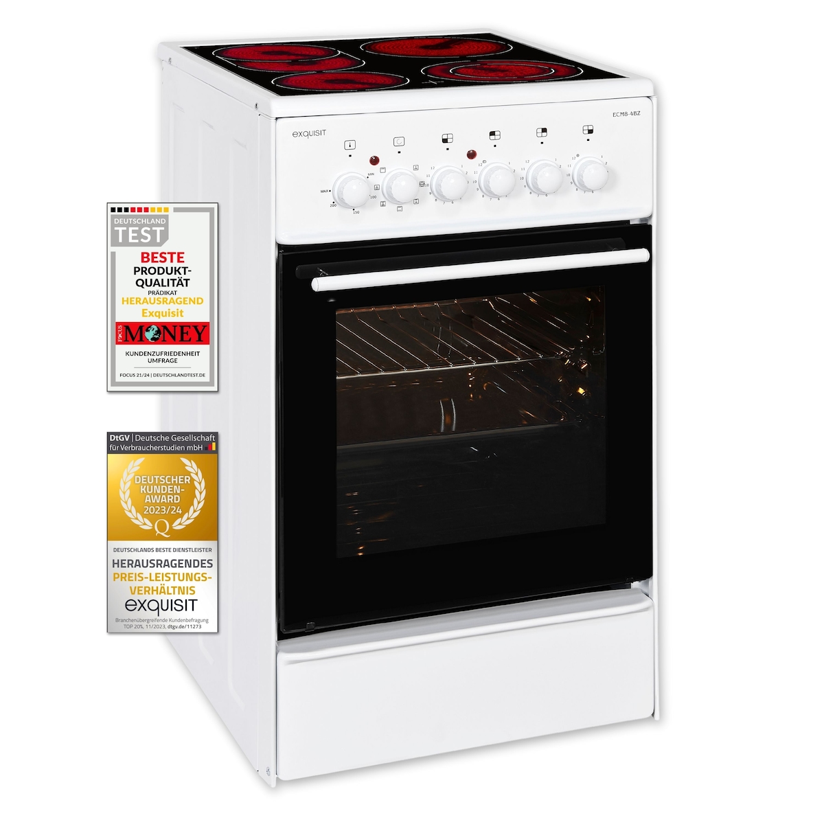 Exquisit ECM 5-4 EEK: A Elektro-Standherd, 49cm breit, Glaskeramikfeld, Umluft, Grill, Weiß