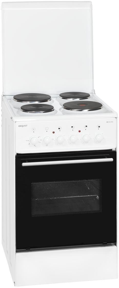 Exquisit EH11.3-4 EEK: A Standherd, 48,5 cm breit, Blitzkochplatte, Ober-/Unterhitze, weiß