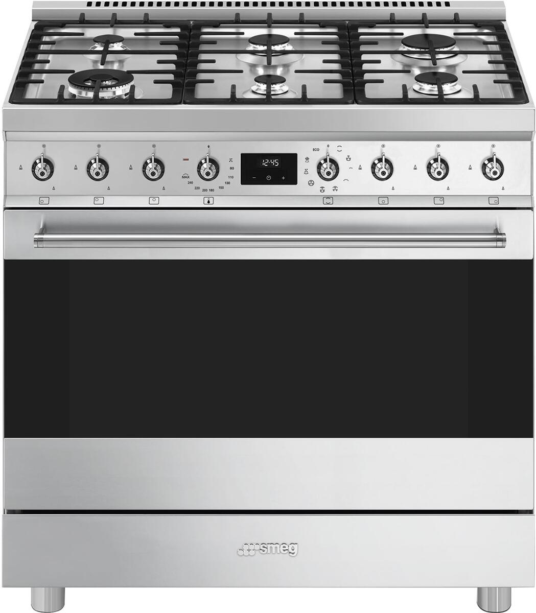 Smeg C9GMXD2 Standherd mit Gaskochfeld, 90 cm breit, 115 L, Dual Ultra-Rapid-Blitzbrenner, Edelstahl mit Anti-Finger-Protektion