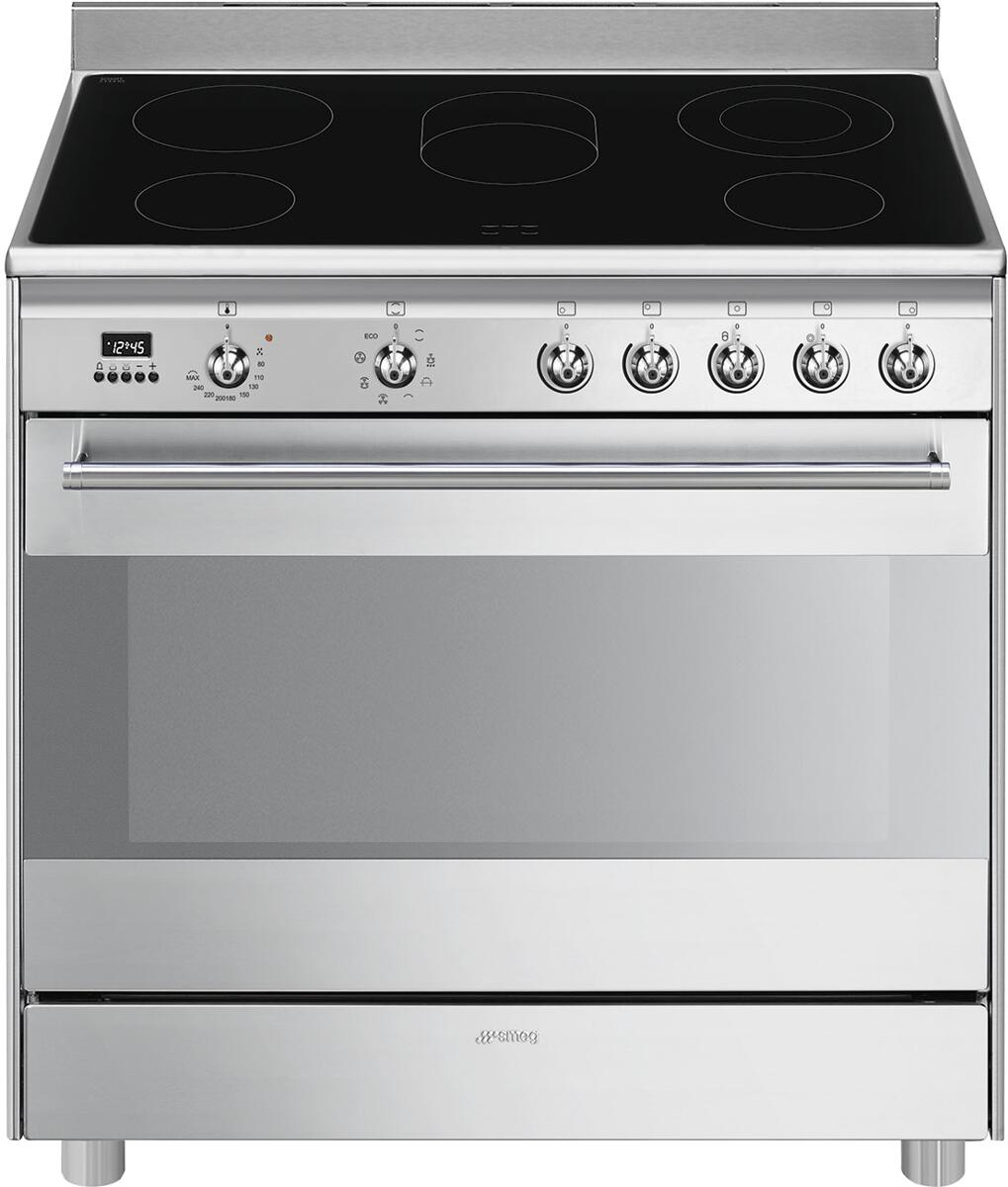 Smeg SCD91CMX9 Standherd mit Glaskeramikkochfeld, 90 cm breit, 115 L, 8 Funktionen, edelstahl