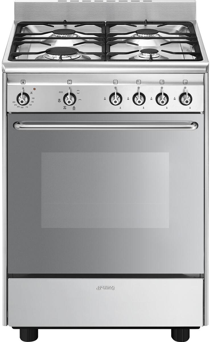 Smeg SCD60EMX9 Standherd mit Gaskochfeld, 60 cm breit, 70 L, 6 Funktionen, edelstahl