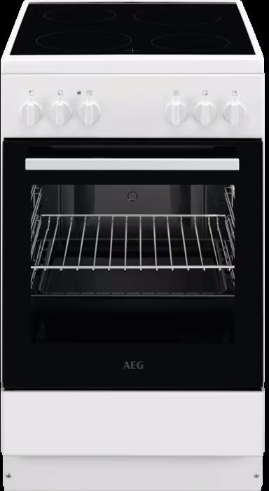 AEG CCB50090BW EEK: A Standherd mit Glaskeramikkochfeld, 50 cm breit, 60 L, 6 Beheizungsarten, Geschirrwagen, weiß