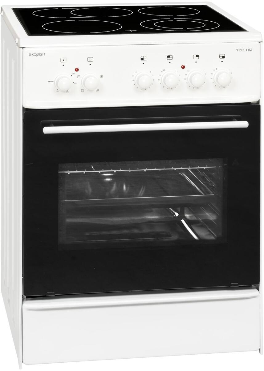 Exquisit ECM 5-4 BZ Elektro-Standherd | Glaskeramik | 4 Kochstellen | Bräter-u. Zweikreiszone | Ober-/ Unterhitze | Grill | Umluft | Weiß