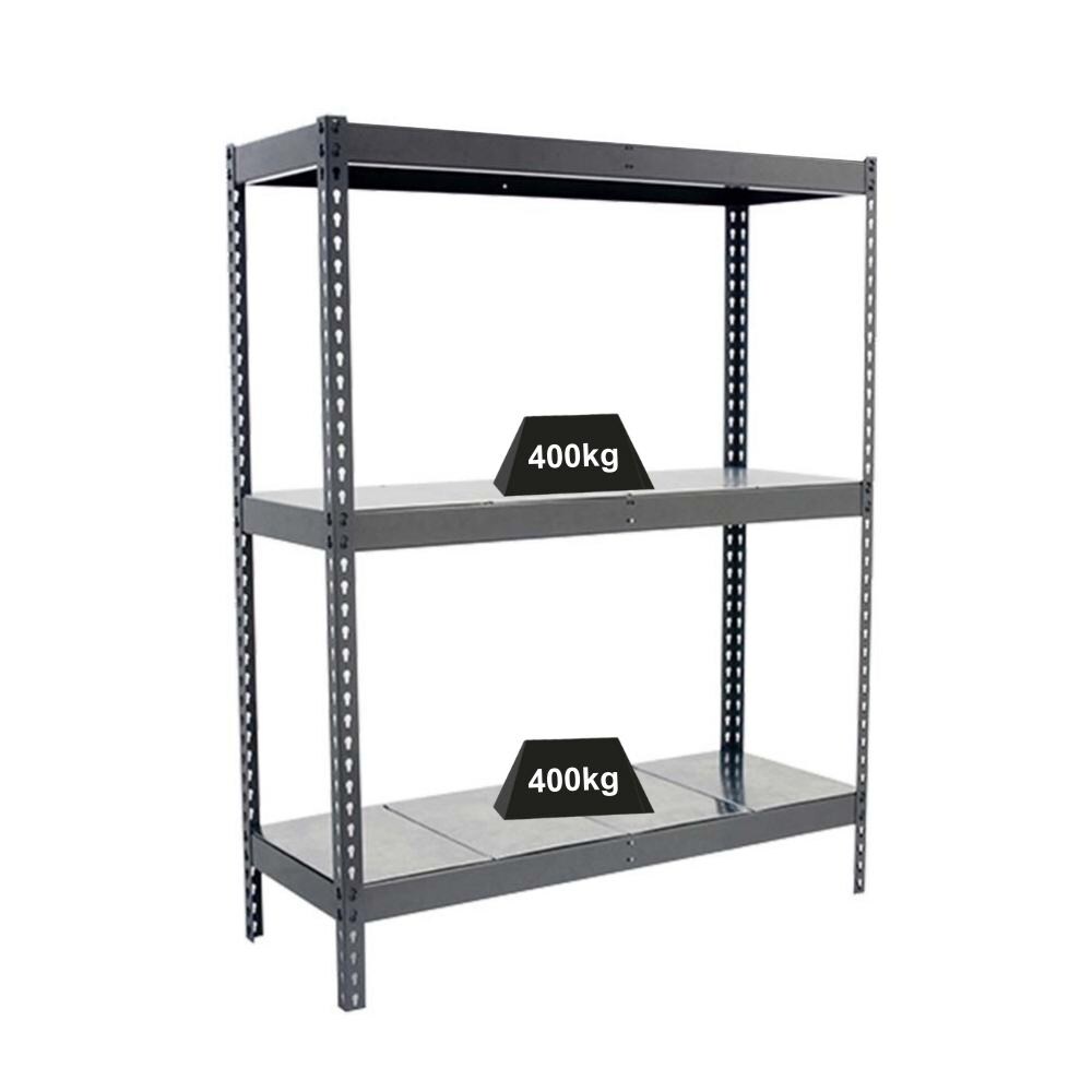 PROREGAL Schwerlastregal METAL YETI THREE | HxBxT 200x120x75cm | Fachlast 400kg | Grau | Regal Standregal Werkstattregal Lagerregal Kellerregal