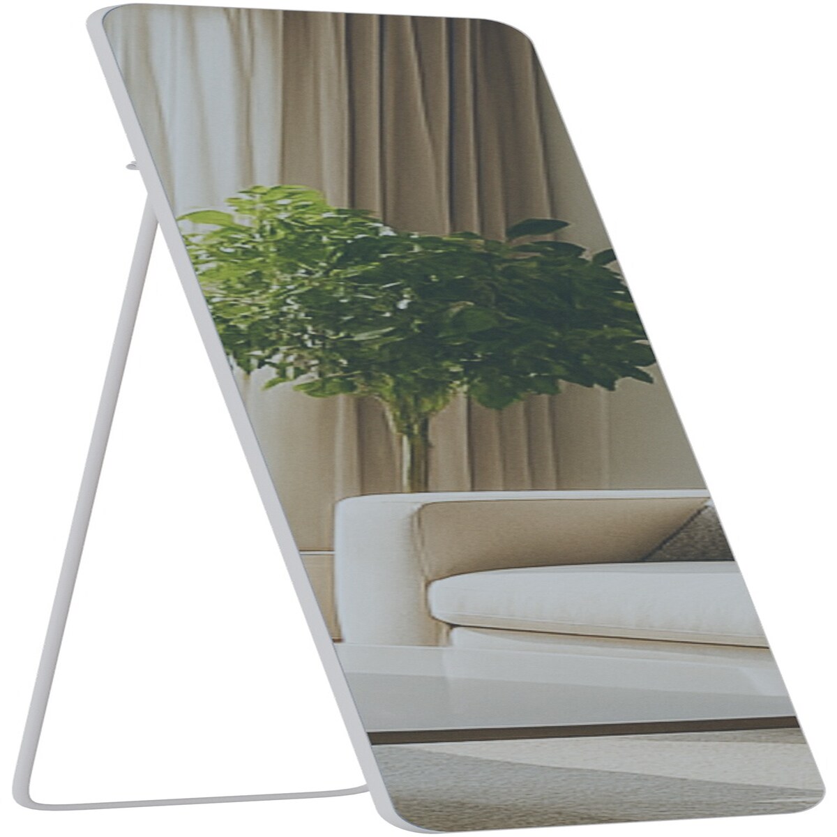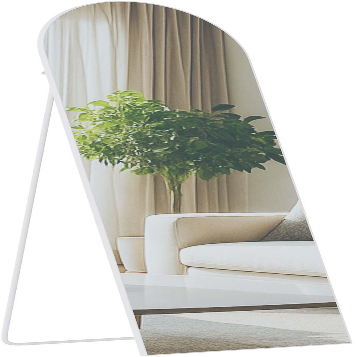 ProximaX Standspiegel 140×45 cm – Unregelmäßige, gebogene Form, Weiß Samtrahmen – Perfekt für den Ganzkörperblick & Outfit-Check