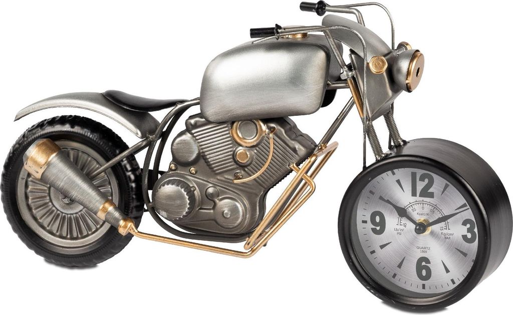 Tischuhr, Standuhr Motorrad 41,5x23cm in Antikoptik aus Metall Formano