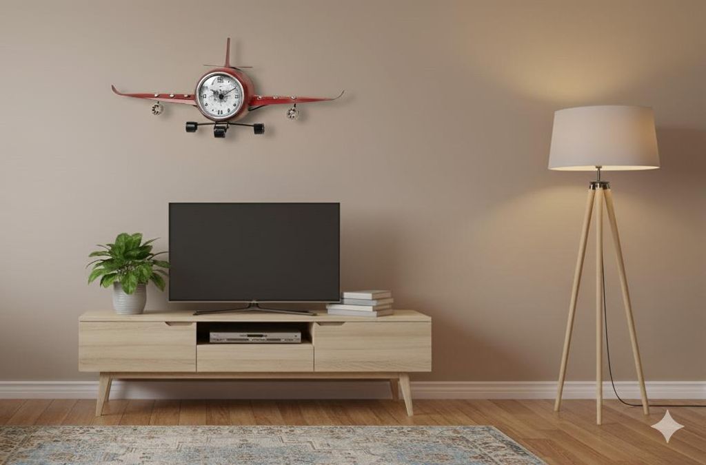 formano Metall Standuhr Flugzeug 40x17cm 3D Metall Uhr rot XL Dekoration Vintage