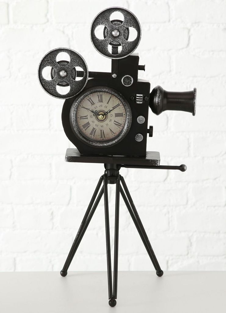 Boltze Tischuhr Filmkamera 52cm Uhr Standuhr Eisen schwarz