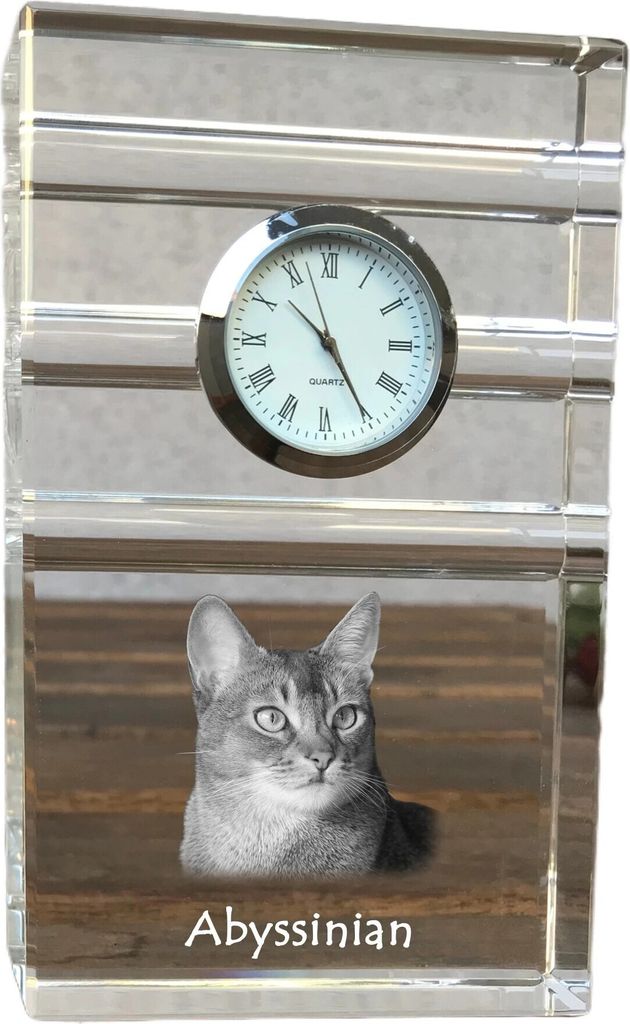 Abessinier - Glasuhr mit Foto, Katzenfoto im Kristall, personalisierte Standuhr für das Büro der Marke Art-Dog